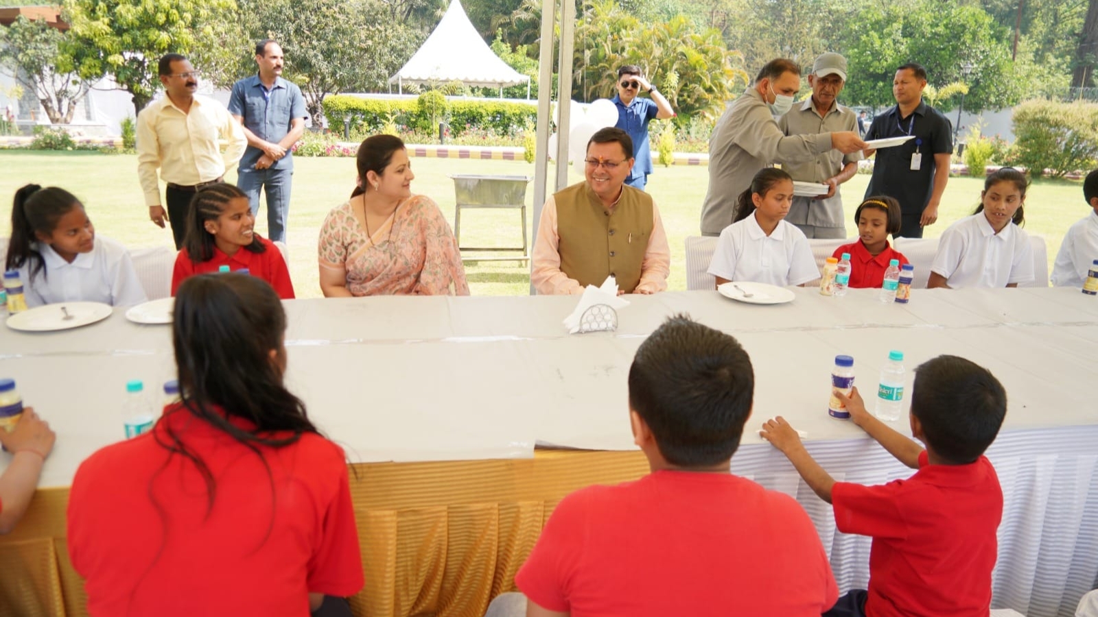 Children from Shishu Sadan Kedarpuram in Dehradun called on Chief Minister Shri Pushkar Dhami today at his official residence in the state capital. Chief Minister interacted with visiting school children and encouraged them to do hard work with full enthusiasm to achieve future goals.